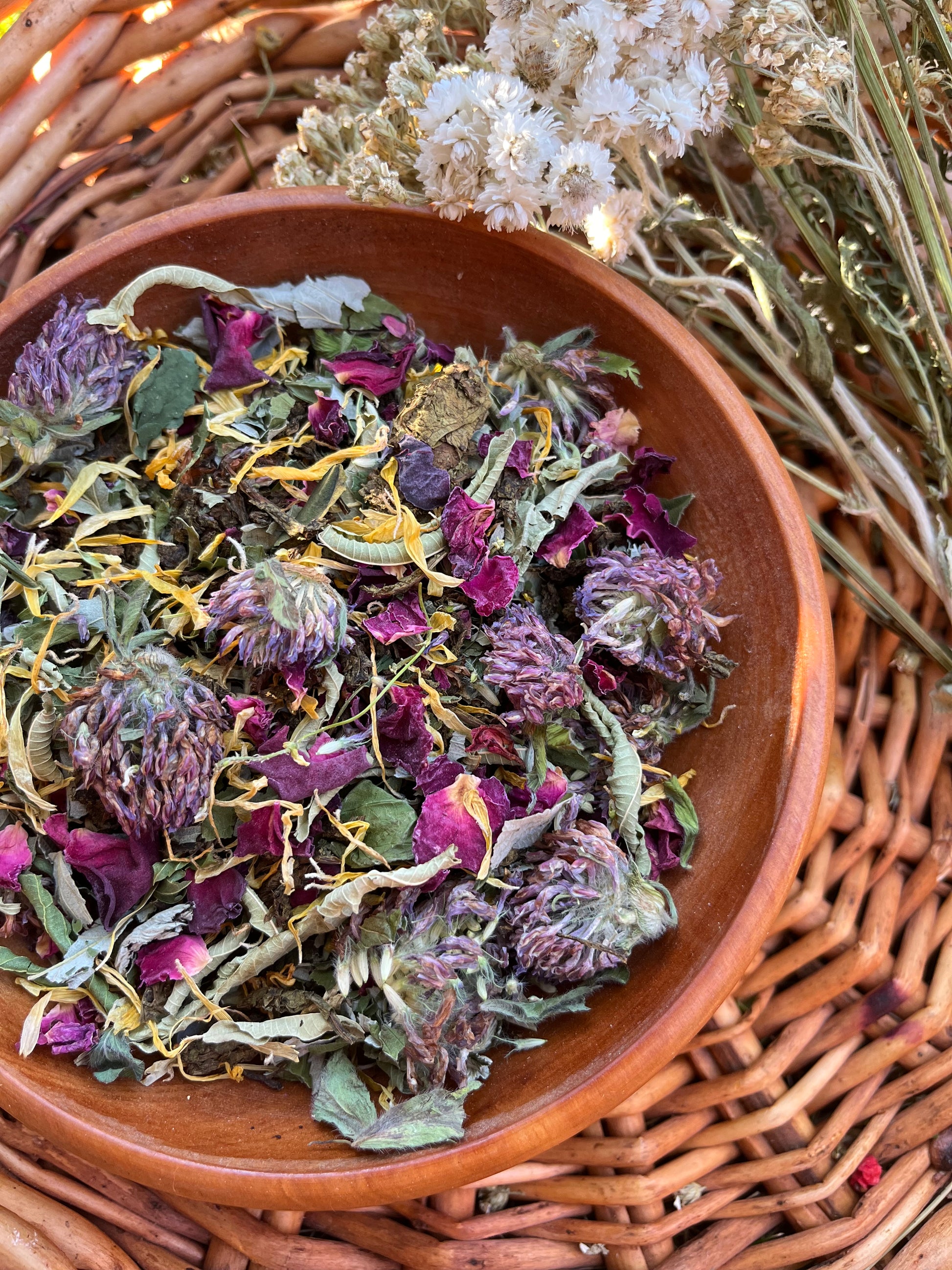 Ingredients: Russian Ivan Chai (wild Fermented Fireweed leaves), wild Raspberry leaves, wild Red Clover, wild Sweet Clover, wild Nettle leaves, organic Calendula, Organic Verbena, organic Rose petals.